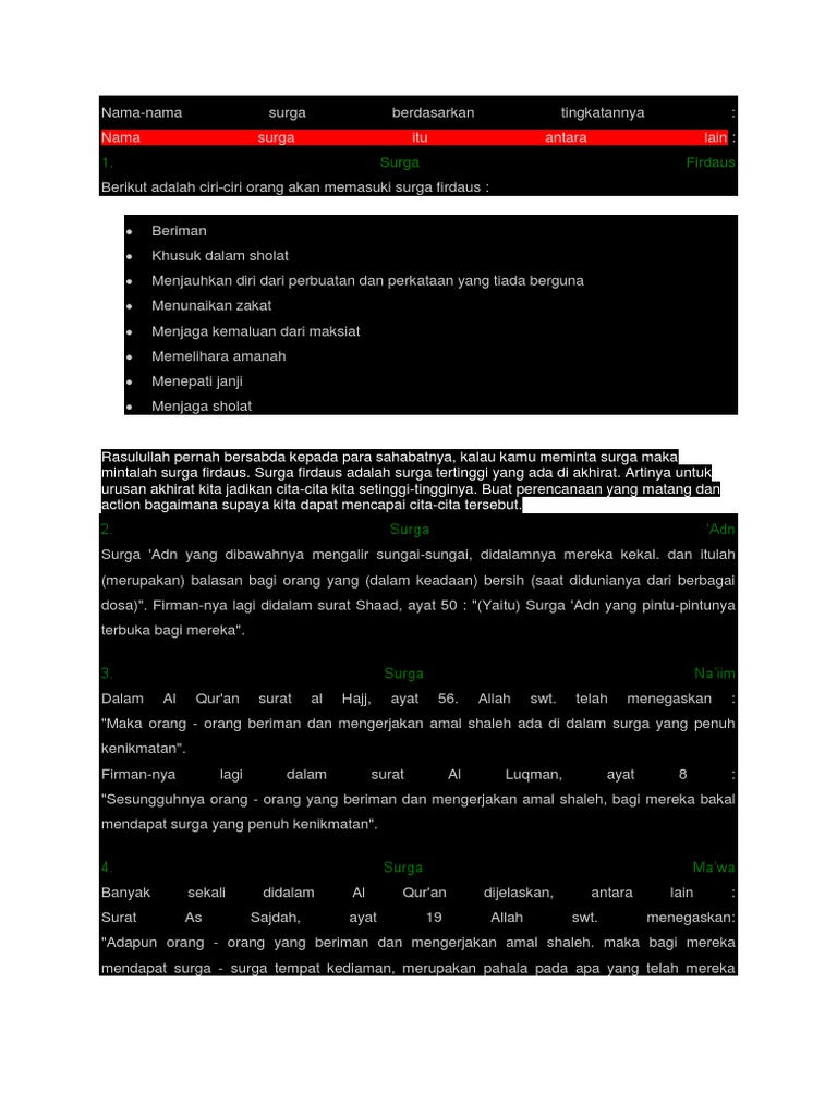 Kenikmatan Dalam Syurga Dan Tingkatannya - 4 Kenikmatan Yang Hanya Ada Di Syurga Hub Takwa - #syurga #nuzul_dzikri salam kenal semua, insyaallah channel ini akan terus update mengangkat tema pembahasan seputar islam dan informasi bermanfaat.. Surga ialah suatu tempat kediaman yang berada di alam akhirat yang tempat itu diliputi oleh berbagai kenikmatan dan kebahagiaan yang belum pernah. Ilutrasi betapa mengerikannya suasana di neraka. Tentu saja penghuni surga itu tidak hanya dari umat nabi muhammad rosulullah saw., melainkan juga sebagian dari keadaan di dalam surga penuh dengan keindahan dan kenikmatan. Yang terpelihara dari perbuatan tercela dan allah. 13.11.2008 · 7 tingkatan surga dan 7 tingkatan neraka.