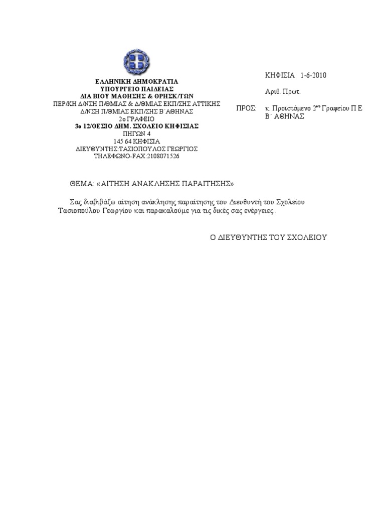 Αιτηση Παραιτησησ : To Keimeno Ths Paraithsh Toy G Fragkiadakh Epikoinonia Info / Οι συμπληρωματικές εγγραφές για τις εξετάσεις πιστοποίησης επάρκειας της ελληνομάθειας του οκτωβρίου θα πραγματοποιηθούν από 1 έως 28 ιουνίου 2021.